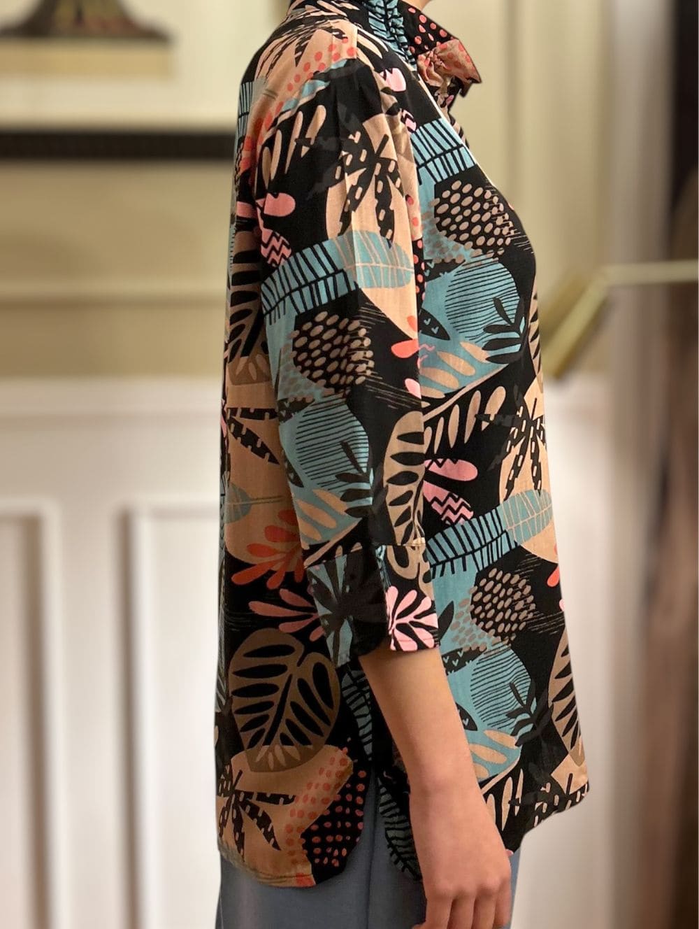 Ruffle neck blouse (Tp2505) Published 28/01/2026 at 1000 × 1328 in Tropical Leaf Print Tunic (TP 2505) ← Previous Next →