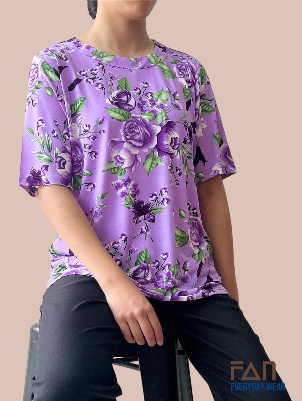 Bright, cheerful, and wonderfully comfortable, this floral spandex top is designed to bring effortless style to everyday dressing. Made from a soft stretch fabric blend, it offers gentle flexibility and a smooth and cool feel against the skin, allowing easy movement and a flattering fit without feeling tight. The classic round neckline and relaxed cut make it simple to wear on its own or layer under jackets and cardigans. The vibrant floral prints add a fresh, feminine touch while remaining elegant.